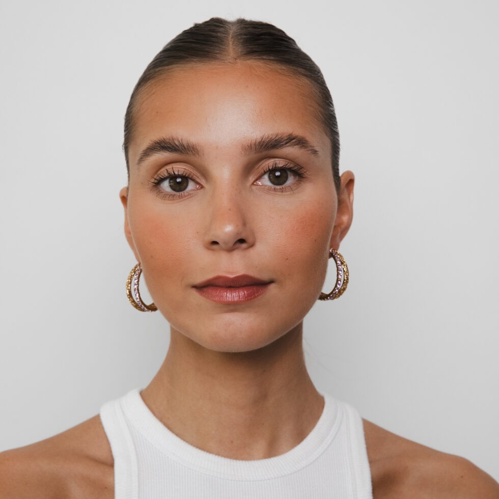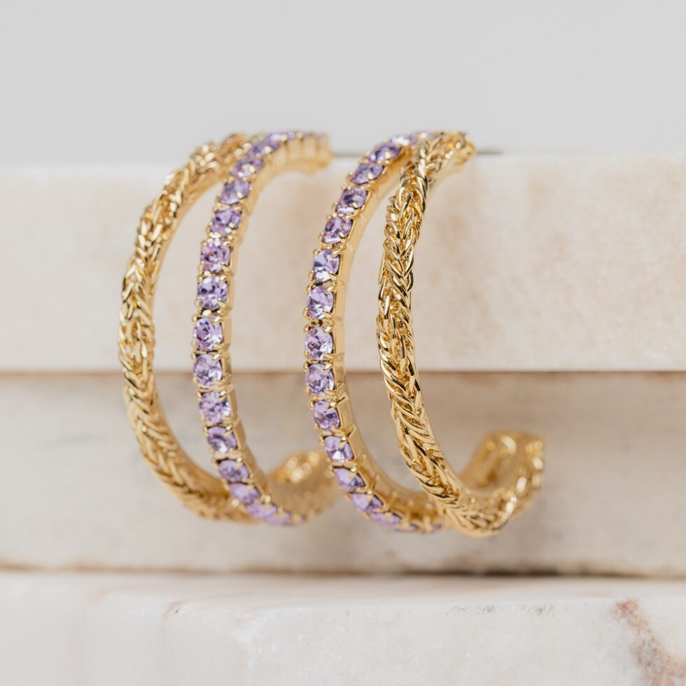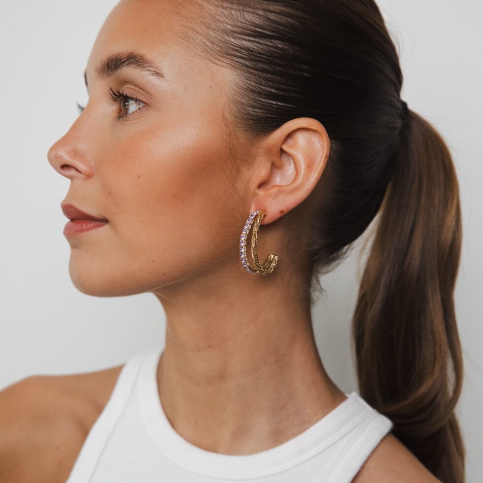 The Elodie hoops are a perfect essential for your collection. Its delicately designed with colored crystals at the front, that make you shine bright all day. Resting in a 24k golden setting, these hoops are no less than everyday luxury. In green, white, black or lilac, with the double hoops you’ll radiate the authentic you.