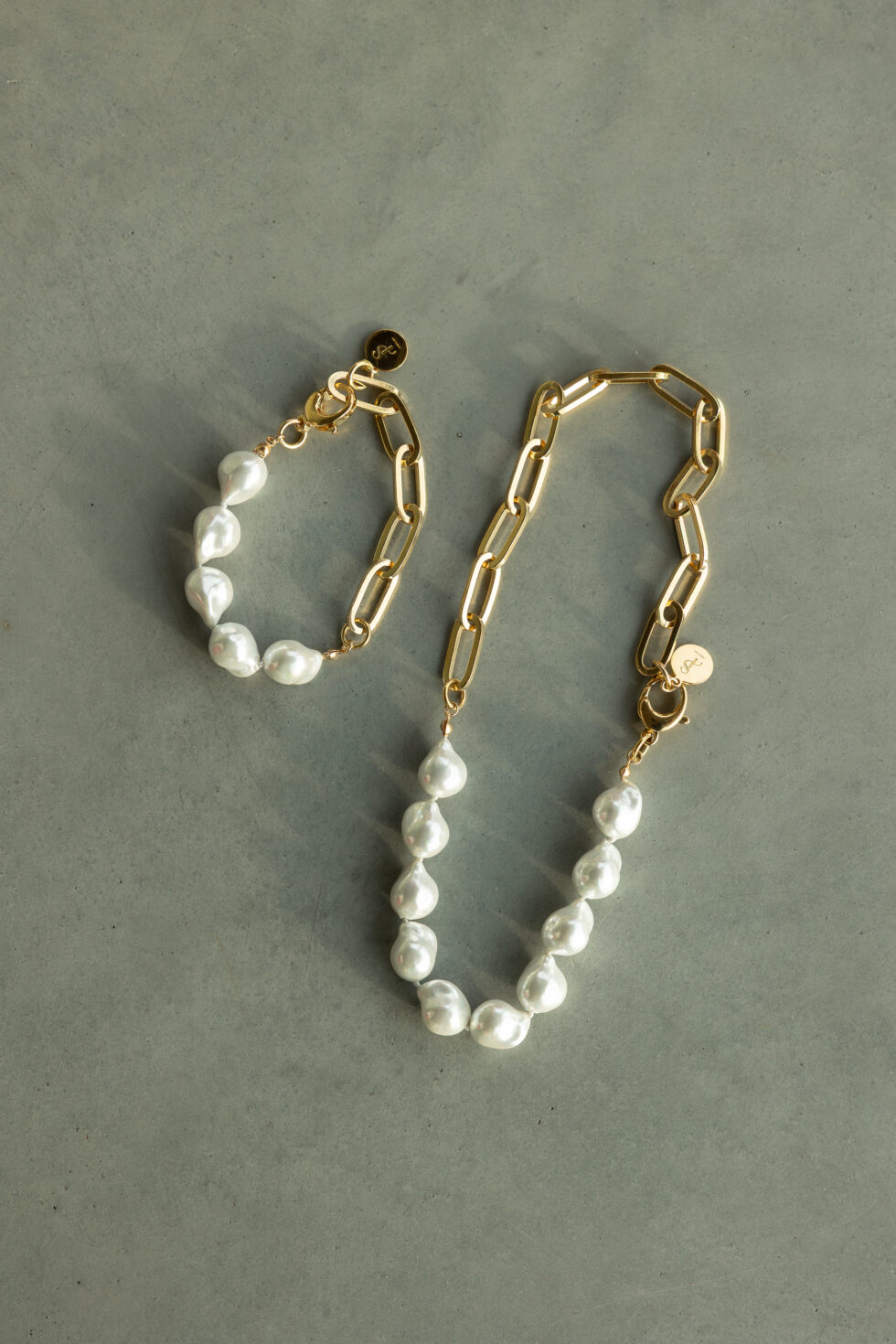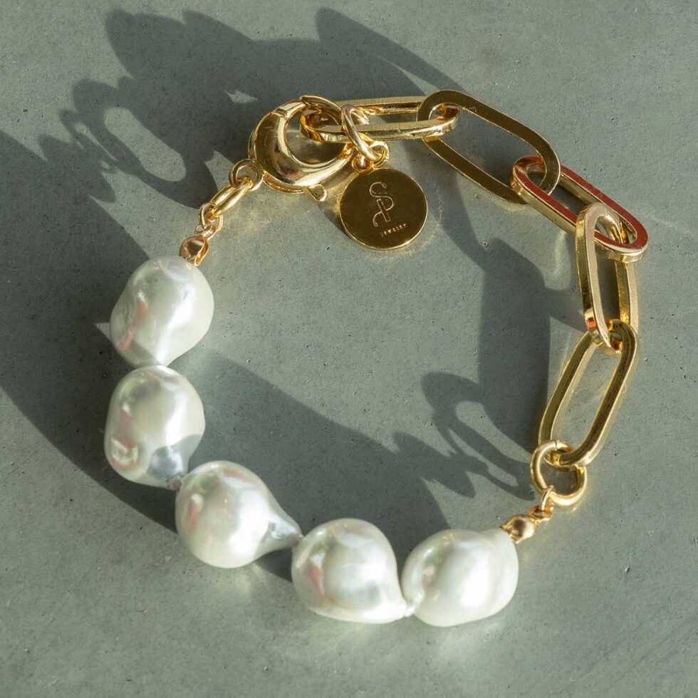Ontdek moderne elegantie met onze Audrey Pearl Chain Mix-armband, ontworpen om organische zachtheid te combineren met een gedurfde structuur. Met zijn glanzende, onregelmatige parels in combinatie met oversized gouden schakels creëert dit sieraad een opvallende balans tussen klassieke vrouwelijkheid en een eigentijdse uitstraling.