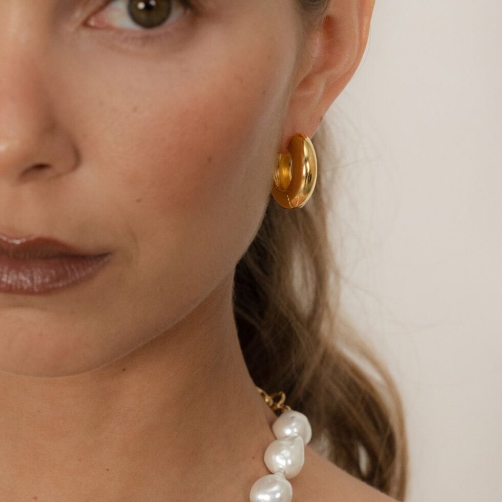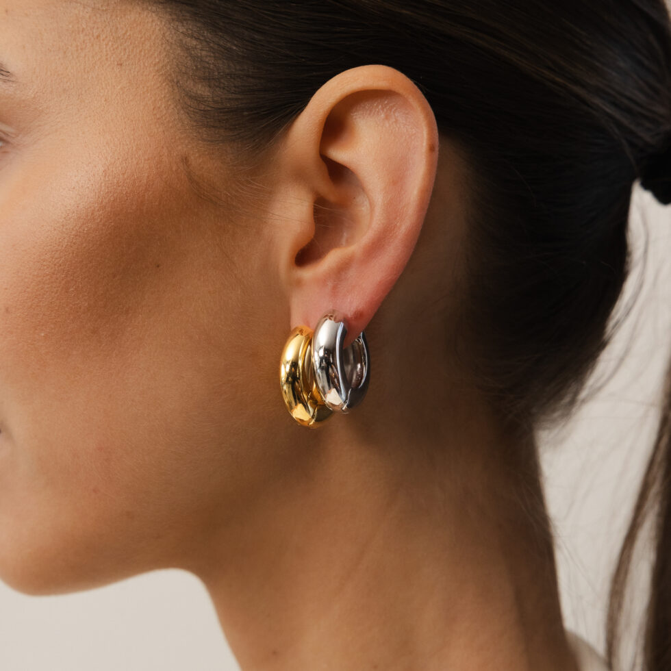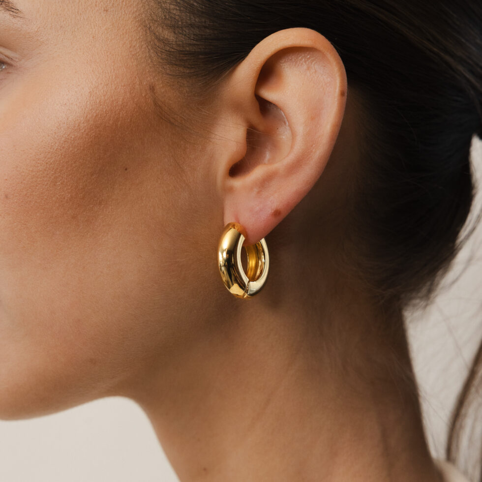 Verfijn je dagelijkse look met de AXIS Gold Hoops, een moderne essential die wordt gekenmerkt door zachte rondingen en een gedurfde, sculpturale uitstraling. Hun afgeronde silhouet en gepolijste gouden afwerking vangen moeiteloos het licht, waardoor ze een subtiele maar zelfverzekerde statement maken.