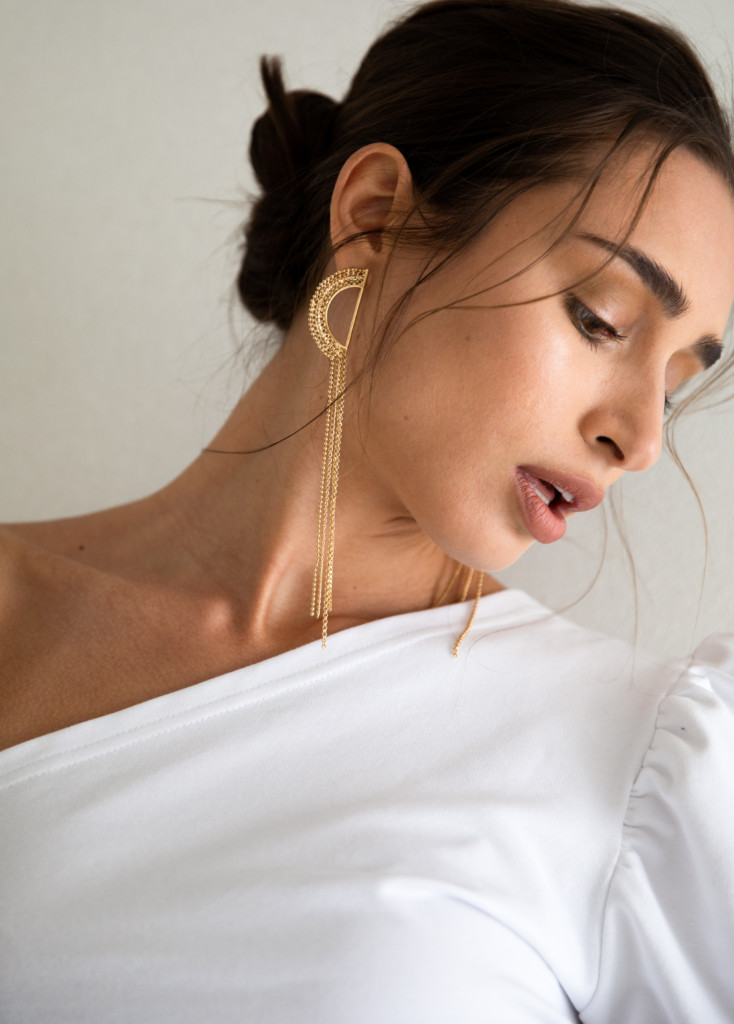 Ontdek je innerlijke stralingskracht met de Gloria-oorbellen, een prachtig meesterwerk uit onze collectie dat de elegantie van strass in goud of zilver combineert met een betoverende vleugelvorm. Deze oorbellen belichamen de essentie van kostbare sprankelingen en zijn ontworpen om je look te verheffen met tijdloze verfijning.
