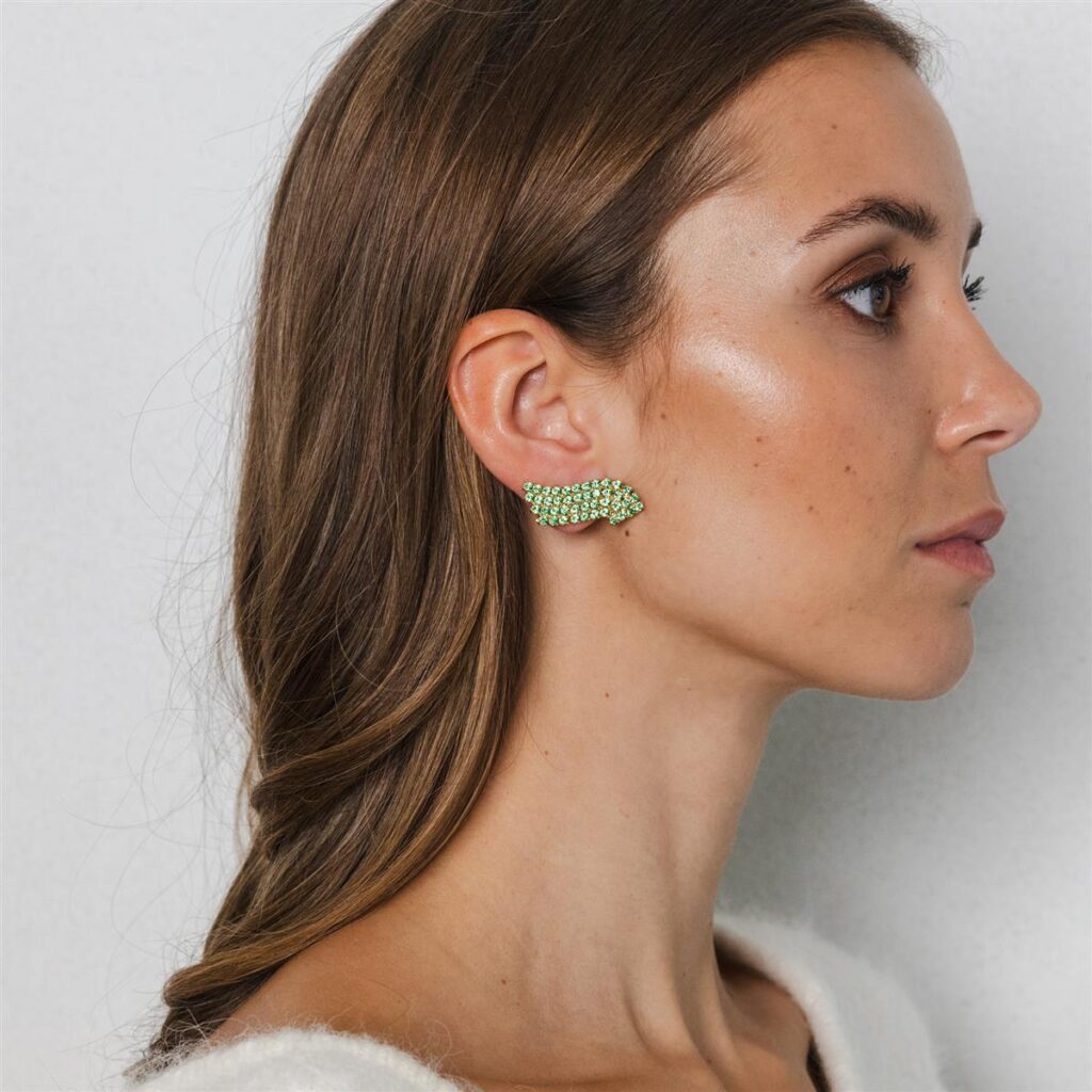 Ontdek je innerlijke stralingskracht met de Gloria-oorbellen, een prachtig meesterwerk uit onze collectie dat de elegantie van strass in goud of zilver combineert met een betoverende vleugelvorm. Deze oorbellen belichamen de essentie van kostbare sprankelingen en zijn ontworpen om je look te verheffen met tijdloze verfijning.