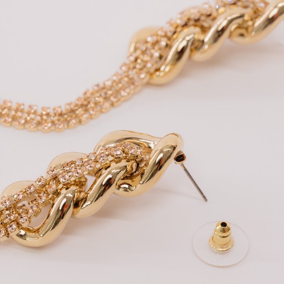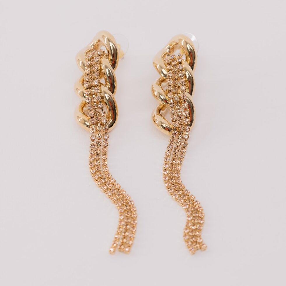 Het Gourmet gelaagde strass-oorbelontwerp vormt een unieke cocktail van klasse en pit. Met haar drie zorgvuldig handgemaakte gouden schakels, gekoppeld aan een reeks verfijnde bungelende glaskristallen, heeft de Gourmet alles in huis om je bijzonder te doen voelen. Perfect om een vleugje glamour toe te voegen aan al jouw dierbare momenten!