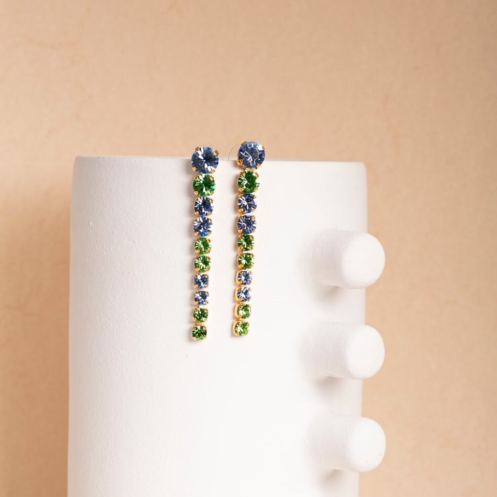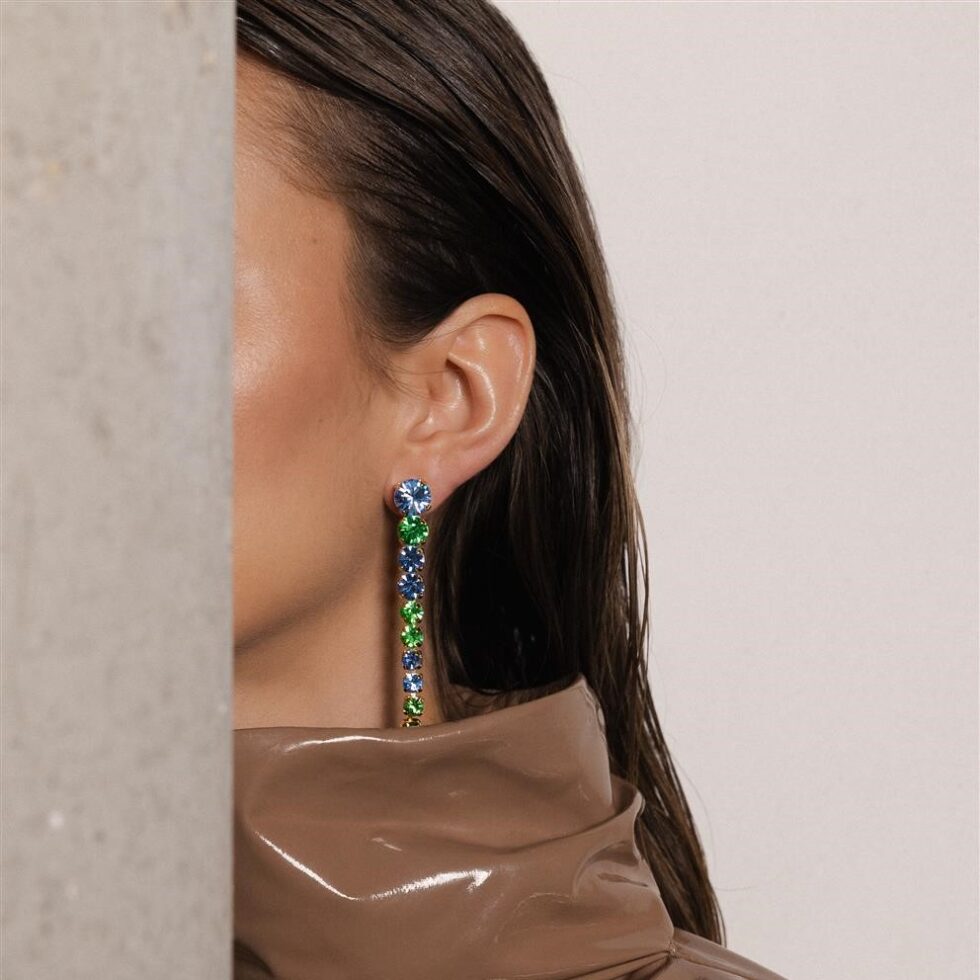 De Joanne Oorbellen zijn een viering van levendige verfijning, met prachtige glazen stenen in verschillende verblindende kleuren. Kies uit fris wit, saffierblauw of levendig groen – of maak een gedurfde statement met de krachtige fuchsia of zwarte diamant tinten.