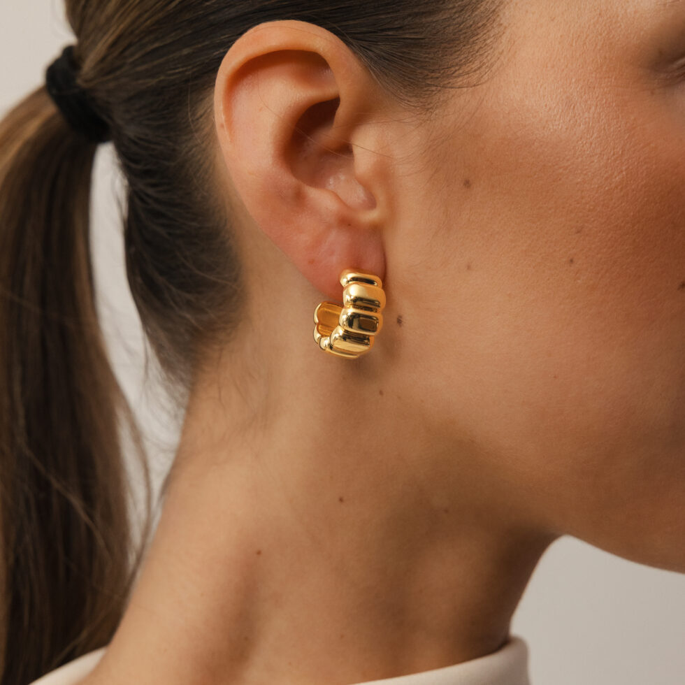 Deze oorbellen zijn met precisie vervaardigd en afgewerkt in een rijke goudtint. Ze maken een verfijnde statement zonder je outfit te overheersen. Dankzij hun veelzijdige ontwerp zijn ze perfect voor dagelijks gebruik en voor speciale gelegenheden.