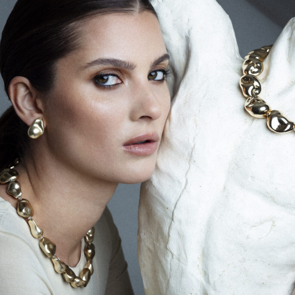 Ontketen je gedurfde stijl met organische elegantie. Verhef je collectie met de OCEANE oorbellen en ketting – de avant-garde statementstukken ontworpen voor de vrouw die durft op te vallen. Vervaardigd met organische vormen verguld met 24-karaatsgoud, herdefiniëren deze accessoires de hedendaagse elegantie en vormen ze een gedurfde en unieke toevoeging aan jouw sieradencollectie.