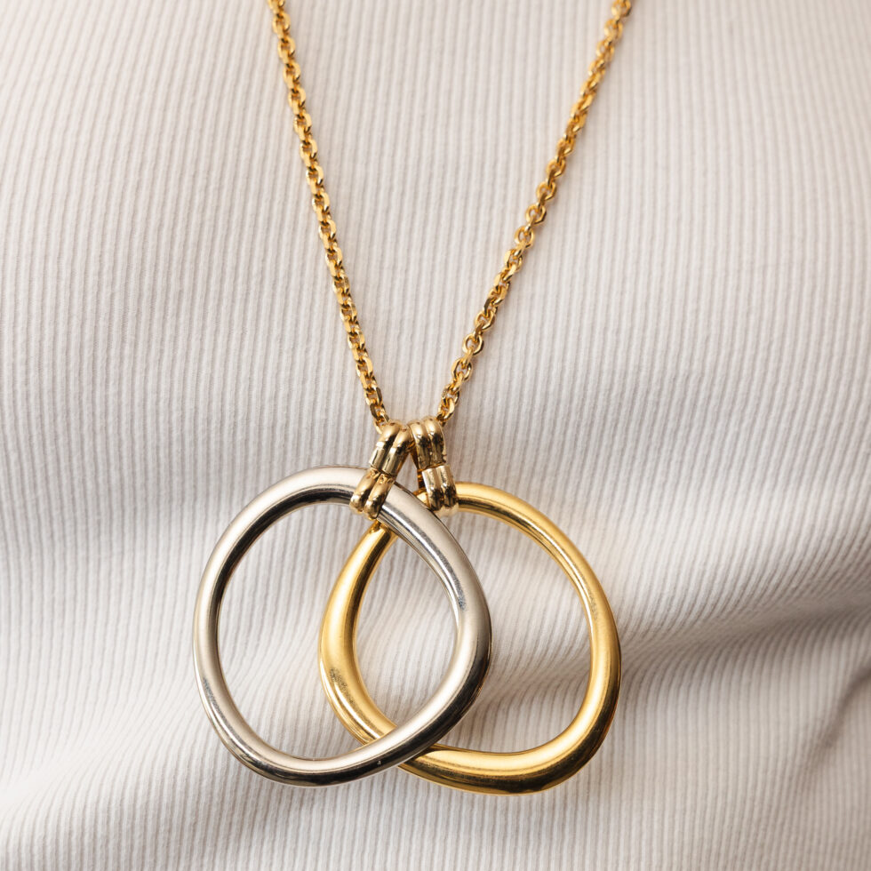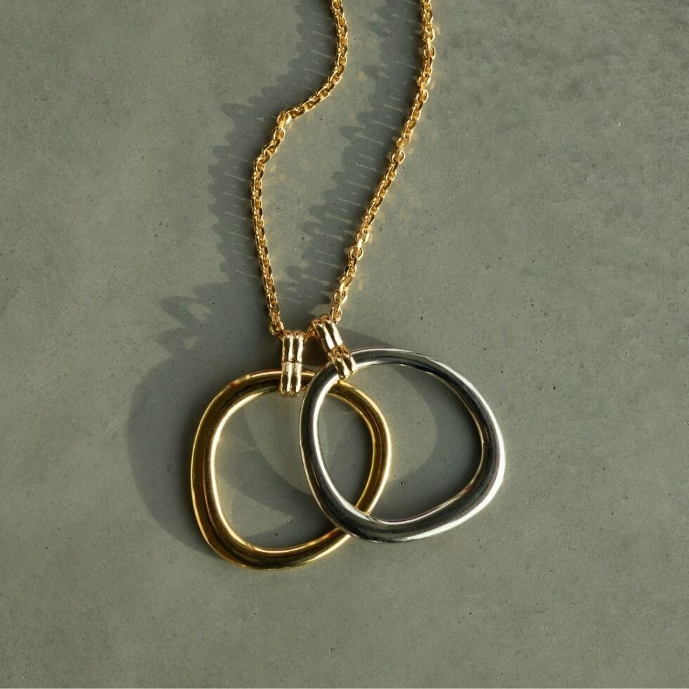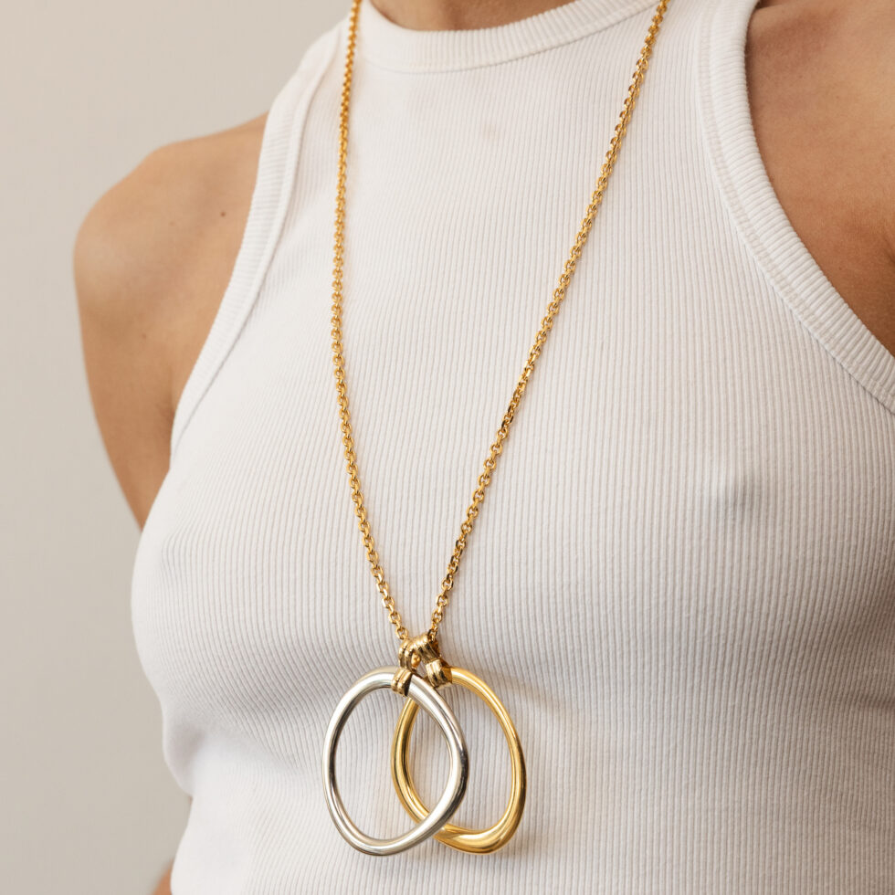 De SALLY Chain Calliope ketting wordt gekenmerkt door zijn strakke lijnen en sculpturale hangers. De verweven gouden en zilveren kralen zorgen voor een evenwichtig contrast, waardoor de ketting diepte en karakter krijgt en tegelijkertijd licht en verfijnd blijft.