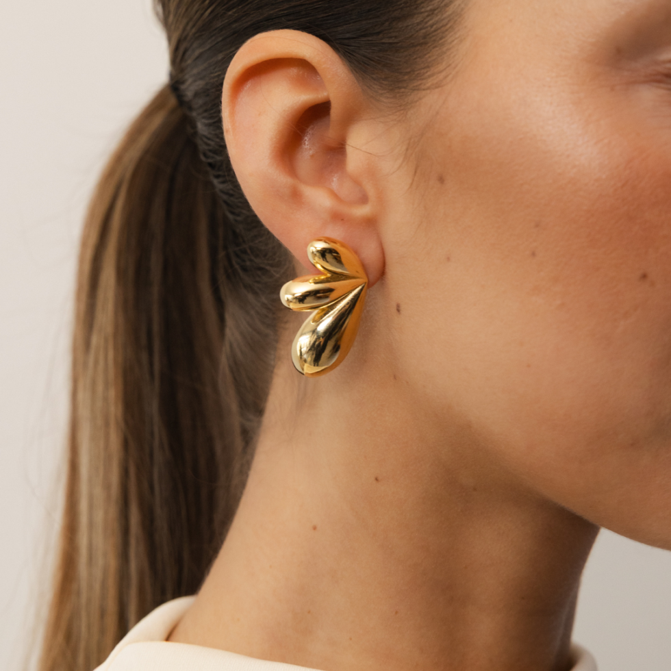 De Tilda-oorbellen zijn afgewerkt in warm goud en vangen het licht prachtig, waardoor ze diepte en beweging toevoegen aan elke look. Door hun gedurfde maar evenwichtige ontwerp zijn ze perfect om alleen te dragen, terwijl ze toch moeiteloos veelzijdig zijn voor zowel alledaagse elegantie als speciale gelegenheden.