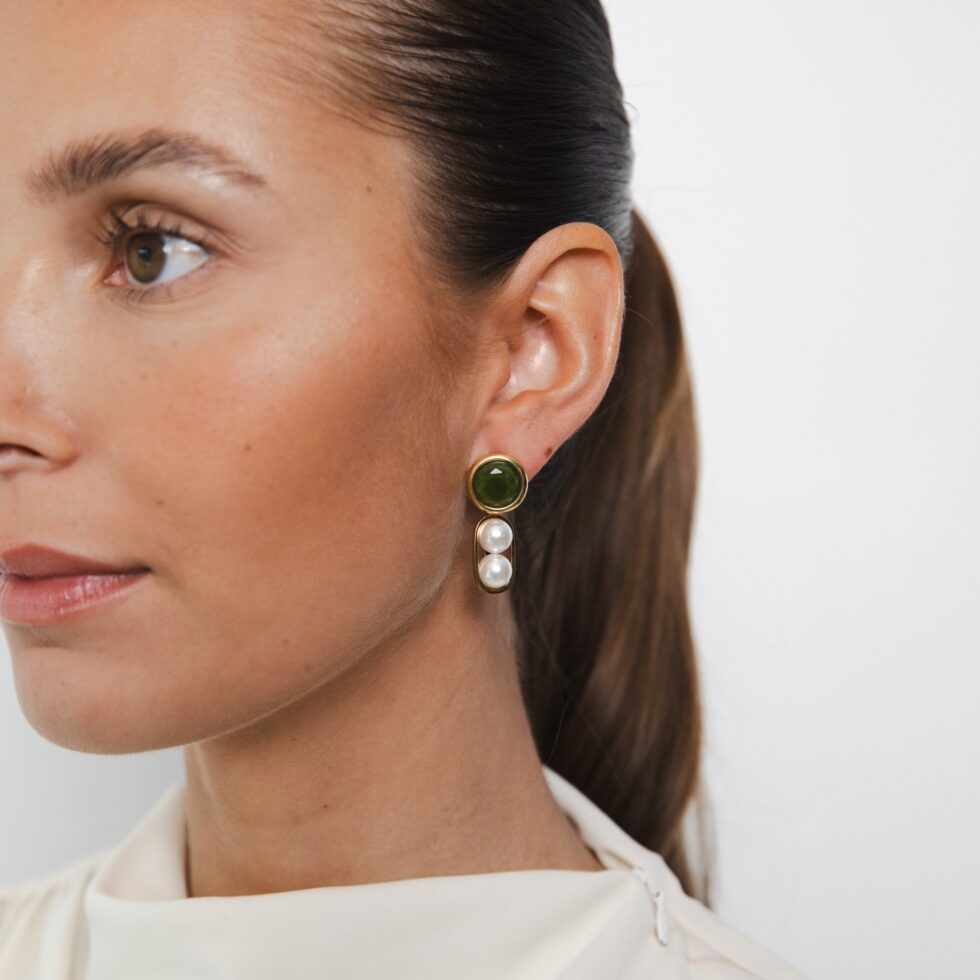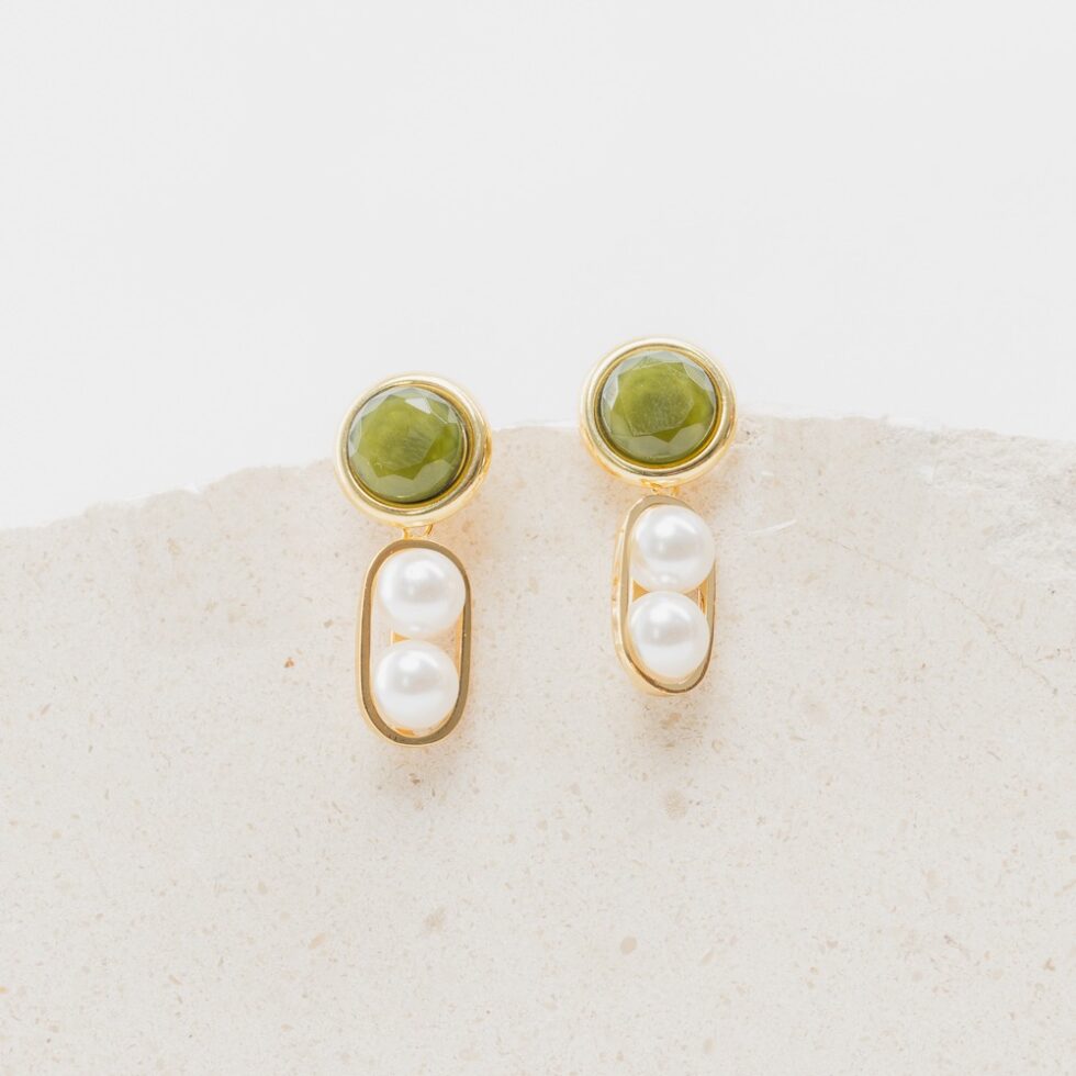 AURORE green pearl short earrings