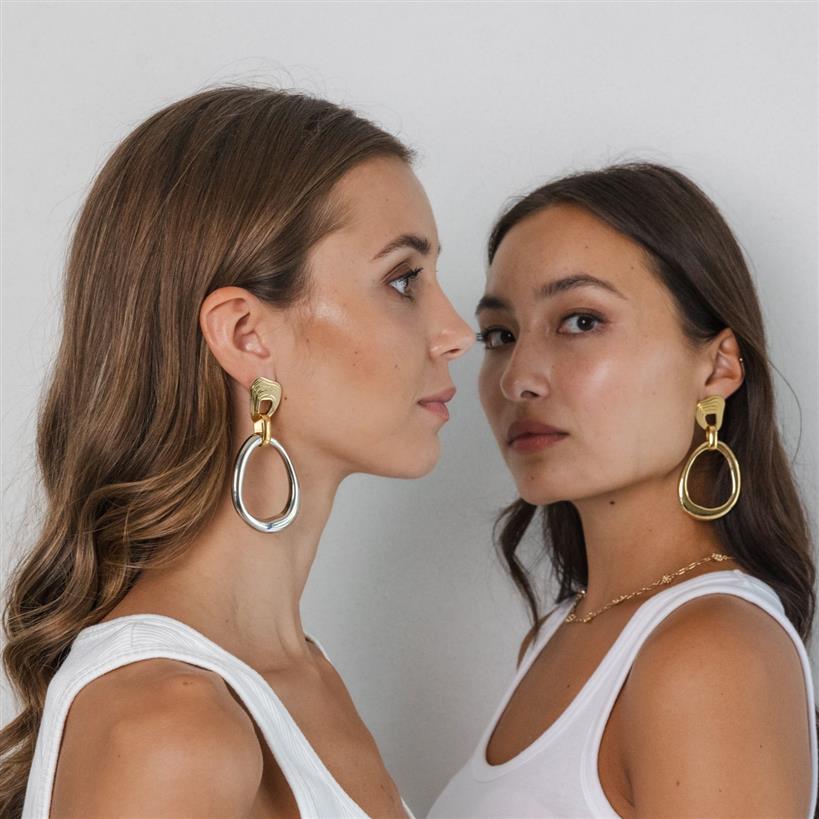 Introducing Calliope – your ultimate accessory for any occasion. Available as a chic shortie in palladium or 24k gold-plated, or as a bold statement earring with a bead or hoop. Also offered as a statement bracelet, Calliope combines lightweight design with timeless elegance, making it a versatile addition to your jewelry collection.