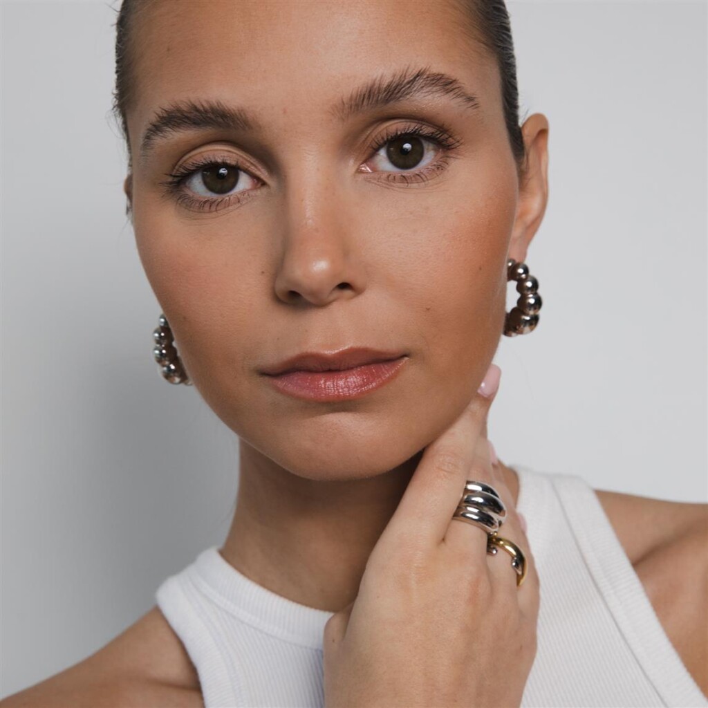 The “Cielo” earrings are the perfect mix of sophistication and glamour. With their soft, curved shape and beautiful long rhinestone chains, they add a touch of luxury to any outfit. These earrings effortlessly take any party outfit to the next level and make you shine like the stars in the sky. Available in long and shorties.