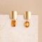 The Dolores earrings embody refined boldness with a touch of artistic flair. Featuring a sculptural gold shield, delicately plated in 24k gold, each piece is paired with a luminous glass stone set in two distinct, asymmetrical shapes. This subtle imbalance creates a modern, curated elegance — a quiet statement of individuality and style. Available in sophisticated shades of cognac, champagne, amethyst, and blue.