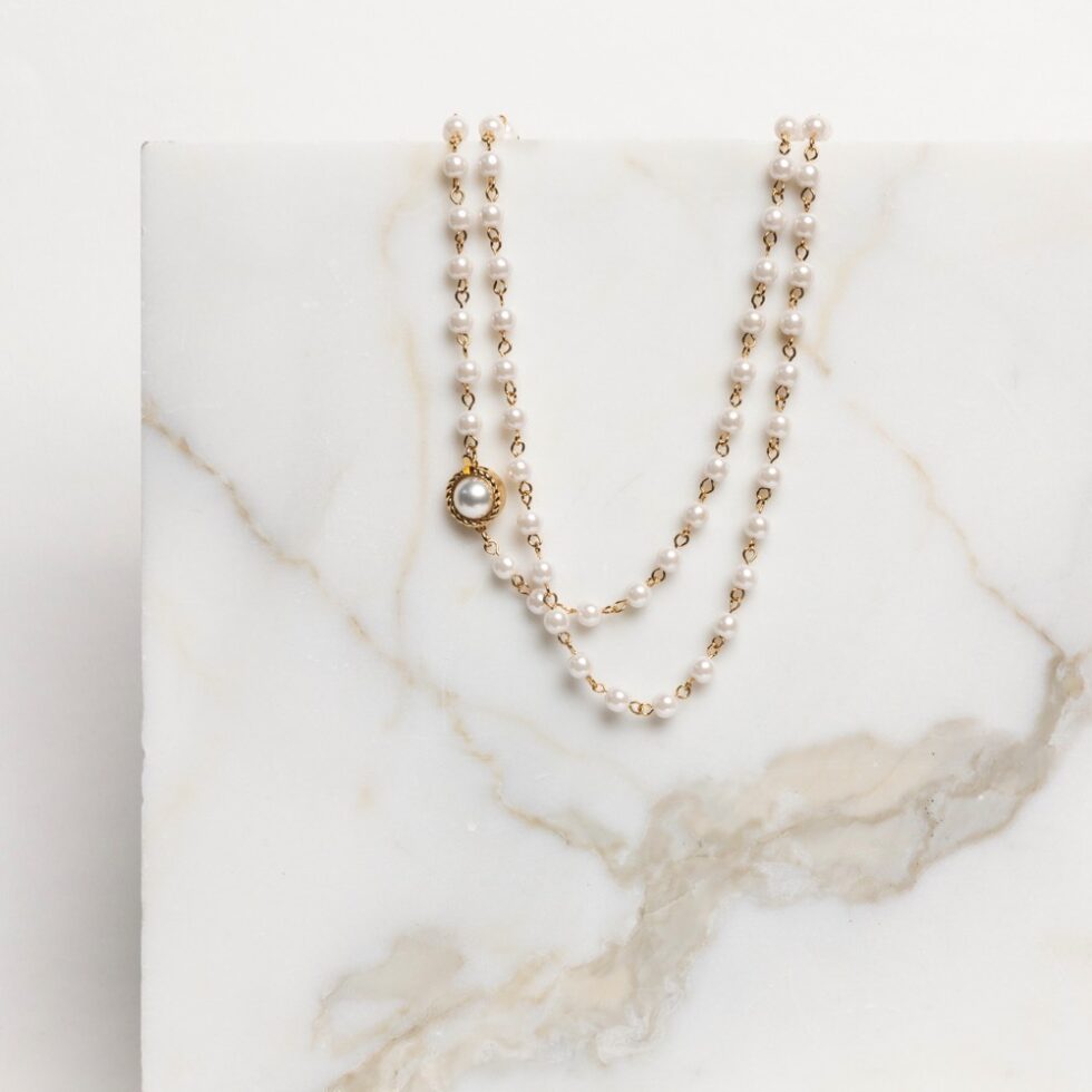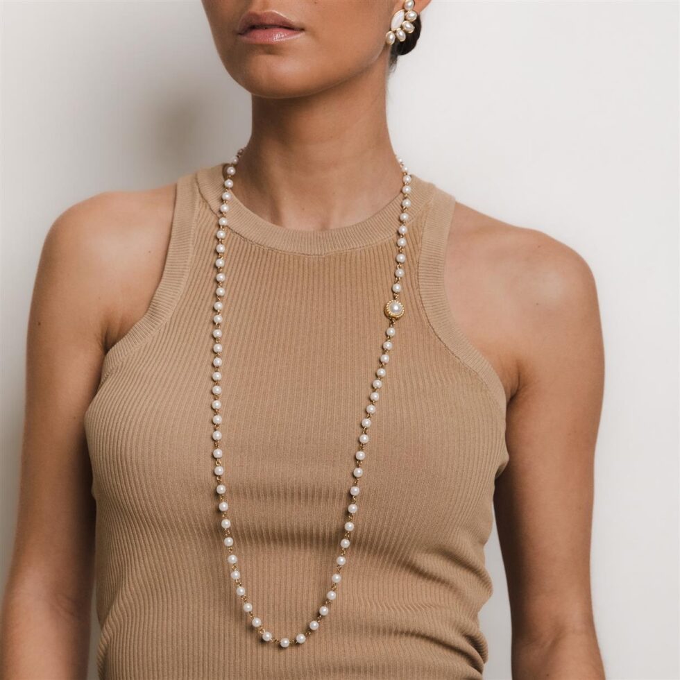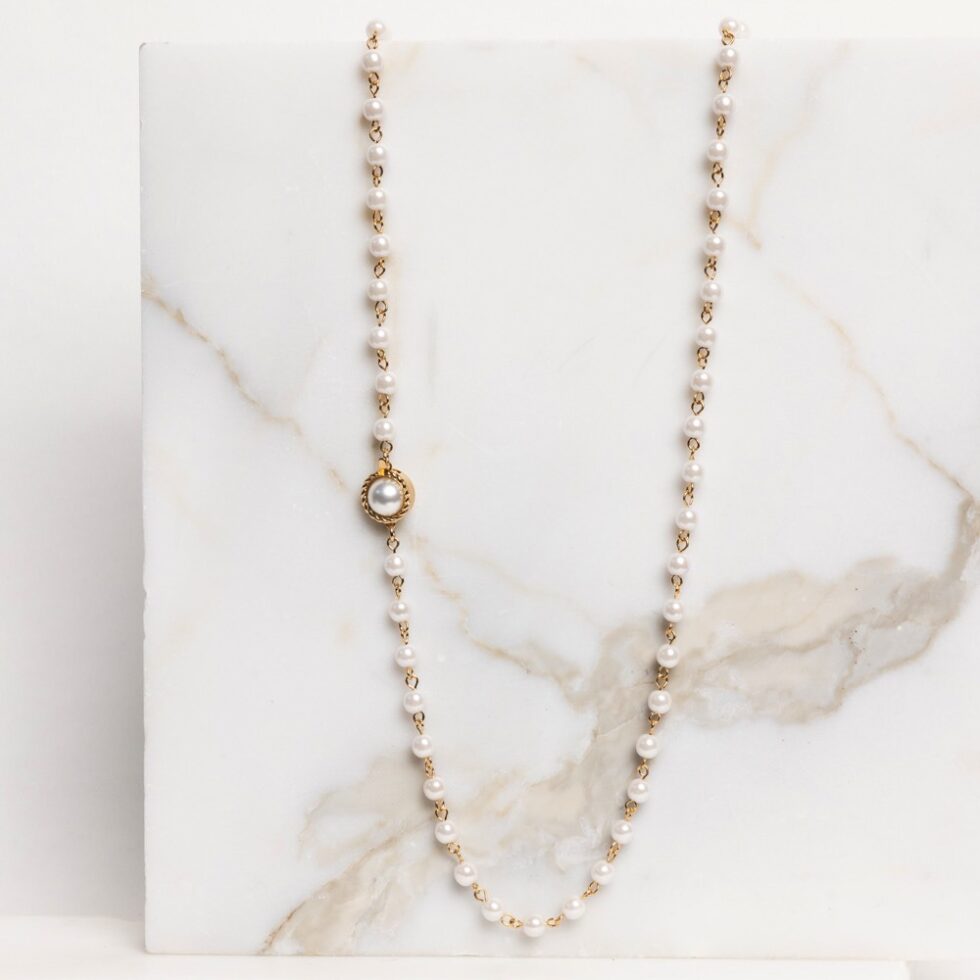Timeless in design, yet catered to modern day women: the small pearl necklace makes a piece with character. Carefully crafted in Italy and enriched with 24k gold plated brass, this design can be worn both as a long or doubled necklace or chunky bracelet. Feminine, stylish and powerful: the small pearl necklace sets you up for a lifetime of wearing pleasure!