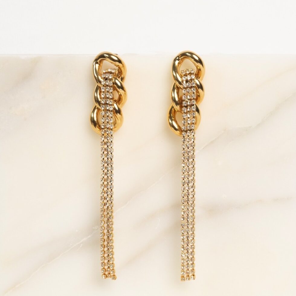 Making a distinct cocktail of ‘class’ and ‘poise’, the Gourmet layered strass earrings sure turn heads. With its three delicately crafted 24k gold plated links, layered and attached to a set of mesmerizing dangling glass crystals – the Gourmet is bound to make you look and feel special the effortless way. Perfect to add a touch of sparkle and glam to your dearest moments!