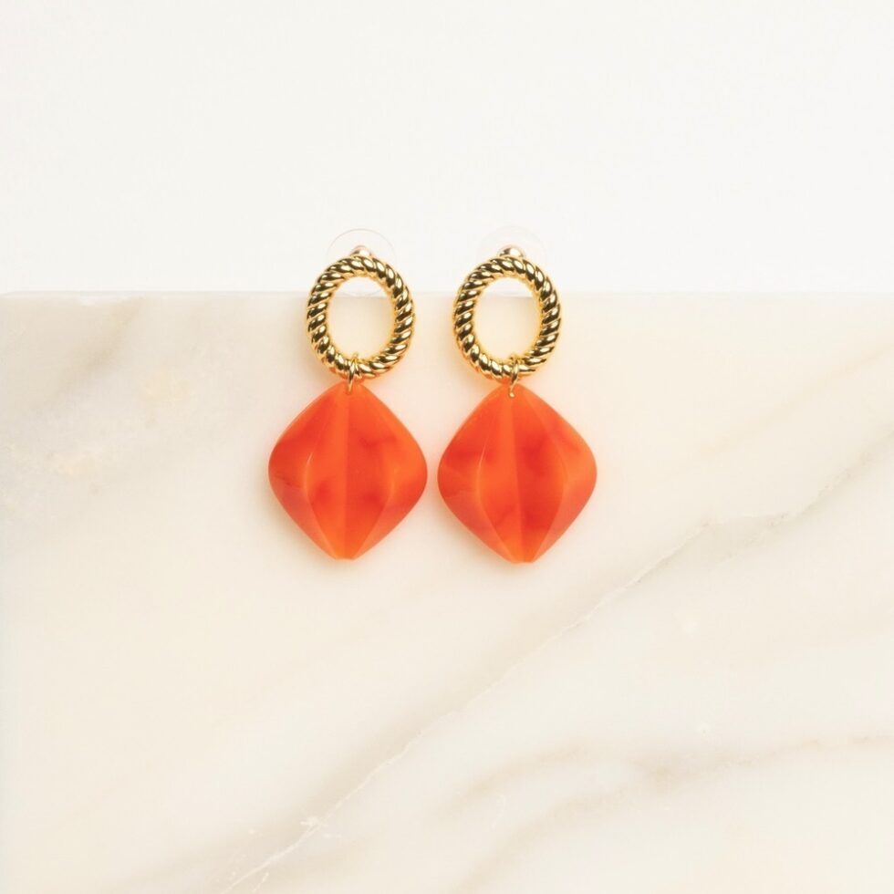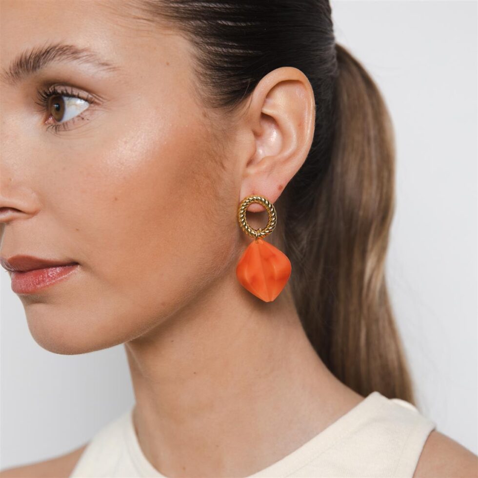 With its masterpiece design, reckoned by a spectacular brass top element, attached to Italian resin beads, the Ila drop earrings are no less than everyday luxury. Be it short and gallant or long and elegant: these golden stunners are bound to keep your senses entertained.