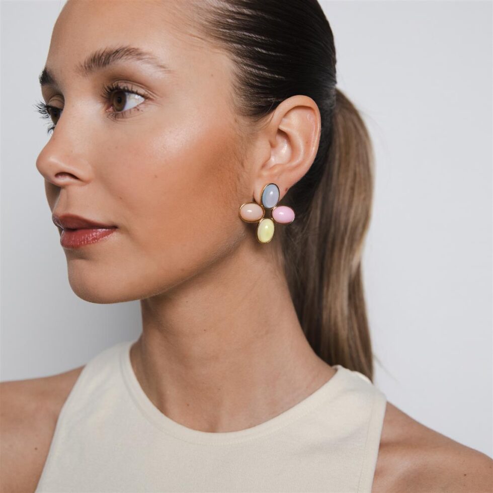 Stijlvol en elegant in ontwerp – de Loulou oorbellen vormen de essentie van vrouwelijkheid. Met haar zorgvuldig handgemaakte glasstenen en ovale cabochons, brengt dit paar je naar dromerige oorden. Divers in kleur en elk met een vleugje fantasie en attitude: de Loulou is een ware trots van Souvenirs De Pomme!