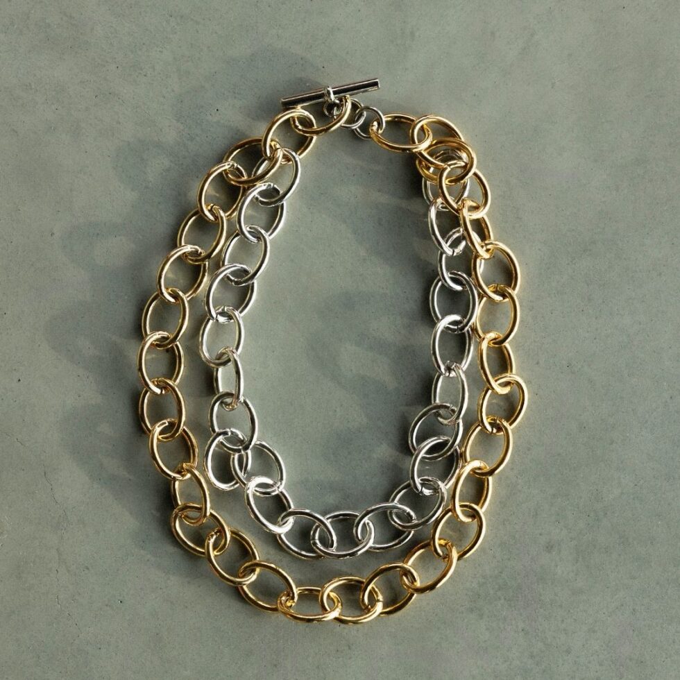 Elevate your everyday style with our Mica bicolor necklace, designed to blend bold structure with timeless elegance. Featuring interlocking links in both gold and silver tones, this statement piece creates a striking balance between warmth and cool sophistication.