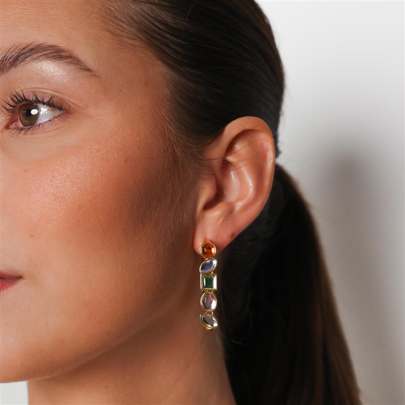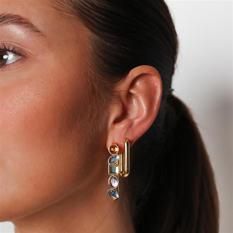 Hoops with a twist, embodying timeless elegance in 24k gold or showcasing innovation with vibrant glass stones in an array of colors. Elevate your style with the MOLLY statement, small, and shortie, where each piece is a testament to versatile sophistication.