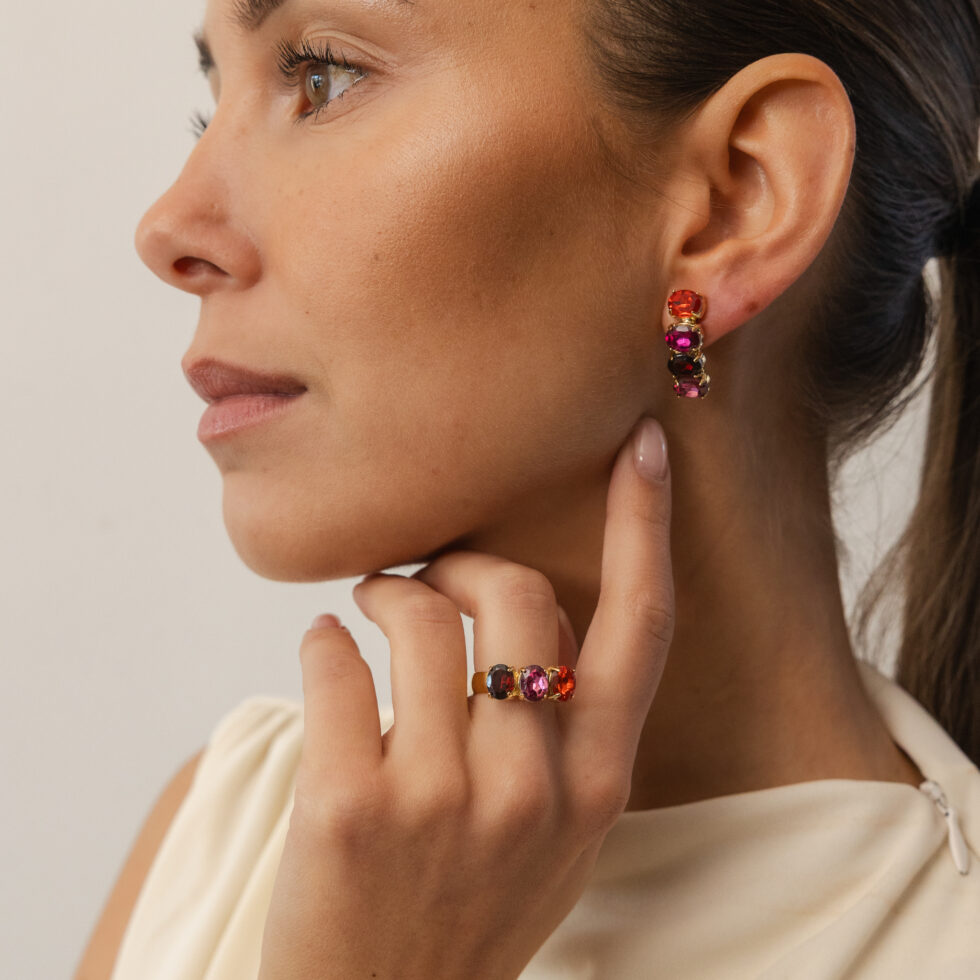 Set in a warm gold finish, the gemstones are arranged to create balance and harmony, resulting in a design that feels both modern and enduring. Elegant without being overpowering, this ring is perfect for wearing alone as a statement piece or layered with other favorites for a personalized look.