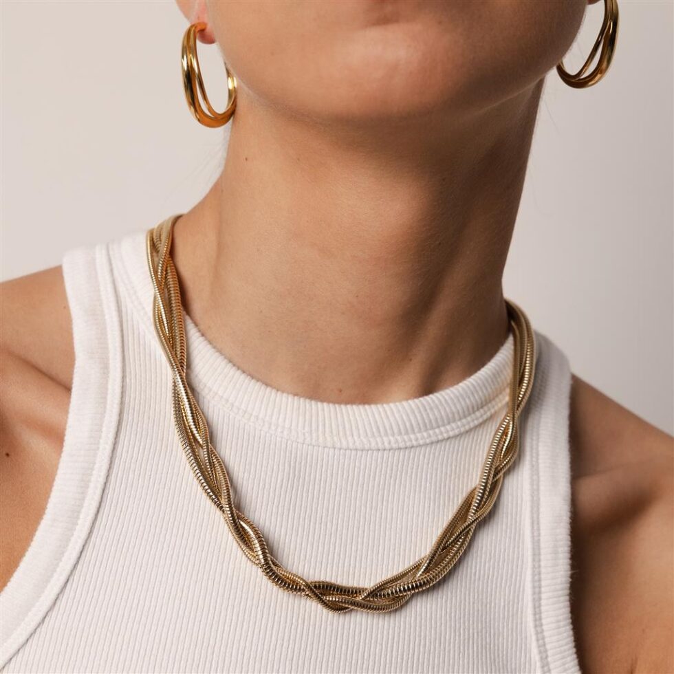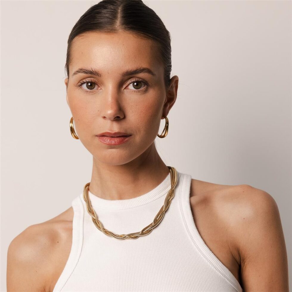 Embrace bold elegance with the Ophelia collection. A necklace adorned with sleek snake chains, these pieces are available in 24k gold-plated gold or palladium. Designed for those who dare to stand out, they add a touch of fierce sophistication to any look.