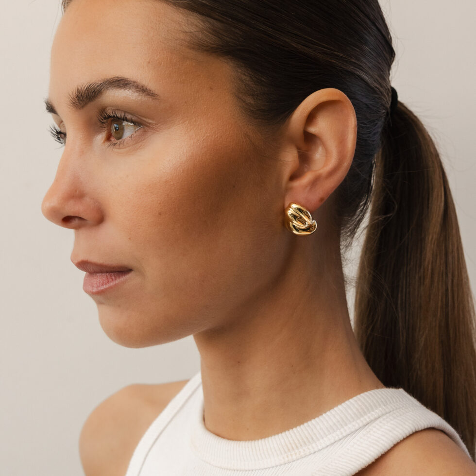 Make a refined statement with our Sofia gold earrings, designed to combine sculptural volume with modern elegance. Featuring a softly curved, layered silhouette, these earrings create depth and dimension while maintaining a polished, timeless feel.