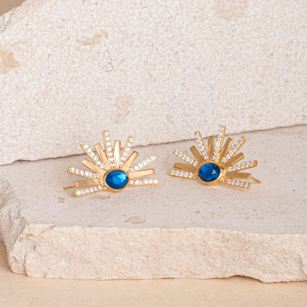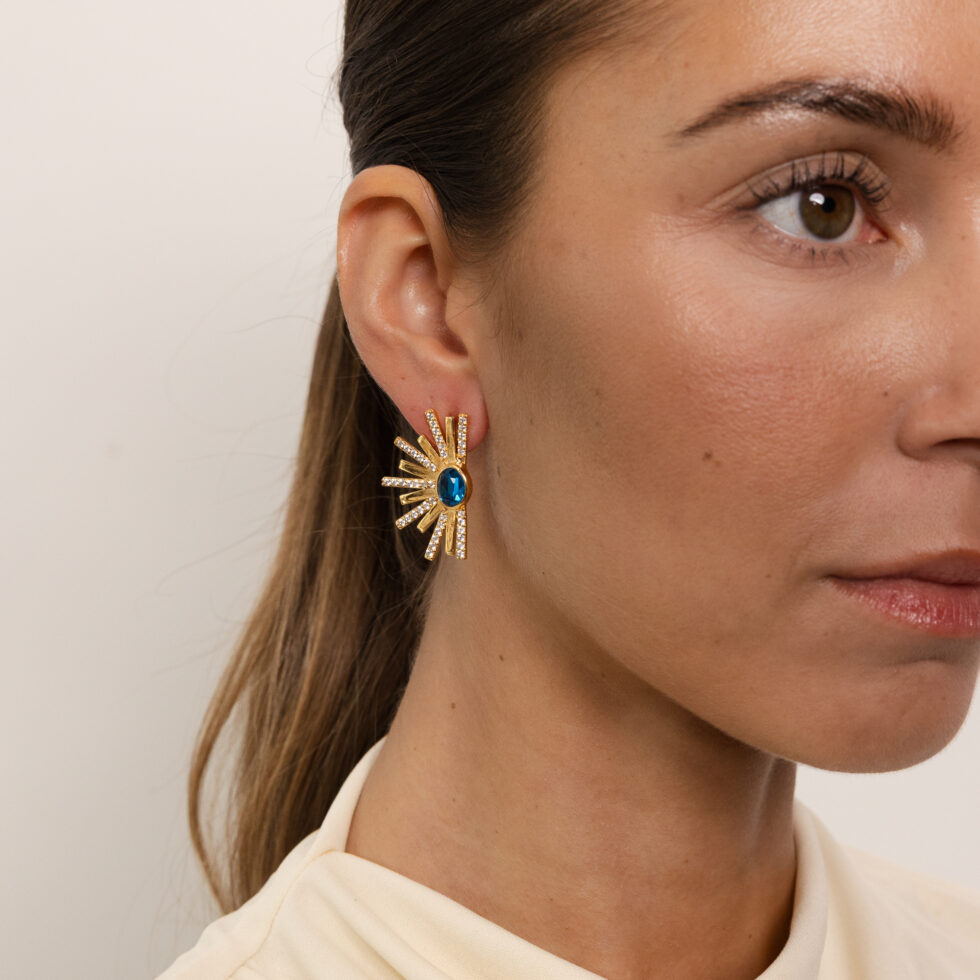 Radiate refined elegance with the Solea Short Earrings, a captivating fusion of modern artistry and timeless allure. Crafted with precision, each earring features a stunning arrangement of white zirconia stones that delicately catch the light, creating a dazzling sunburst effect.