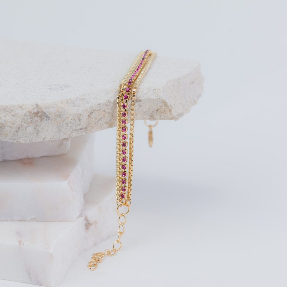 Tilly fuchsia strass and chain trio bracelet