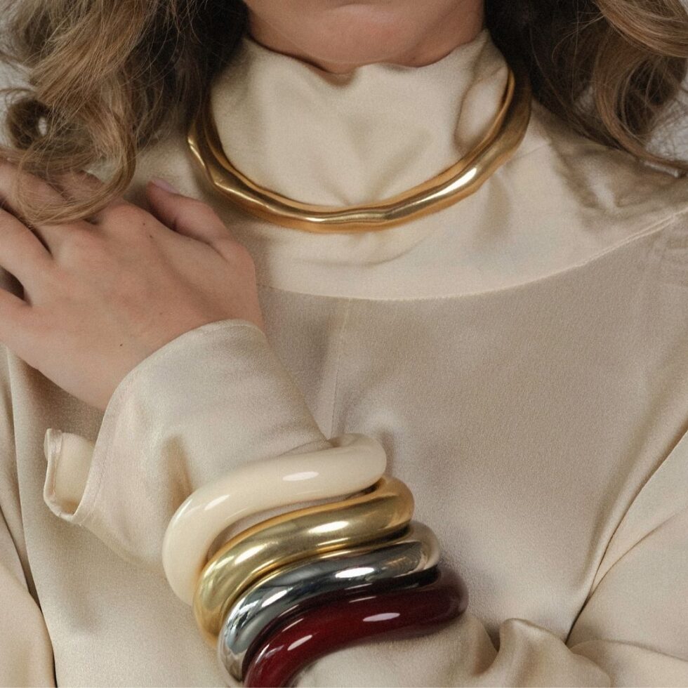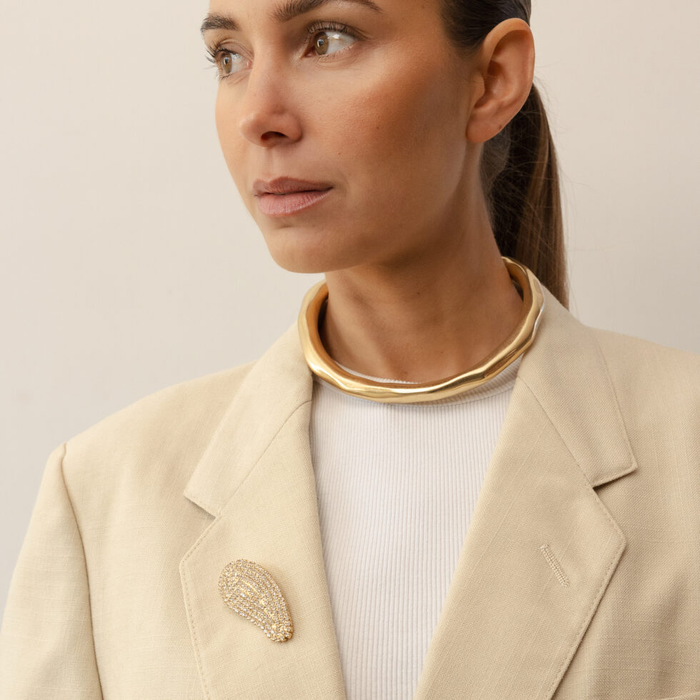 Add a bold yet timeless accent to your jewelry collection with the Vive Statement Cuff NECKLACE. Designed as a refined evolution of the iconic Vive Cuff Bracelet, this piece features a sculptural silhouette with softly organic curves that embrace the wrist with effortless elegance.